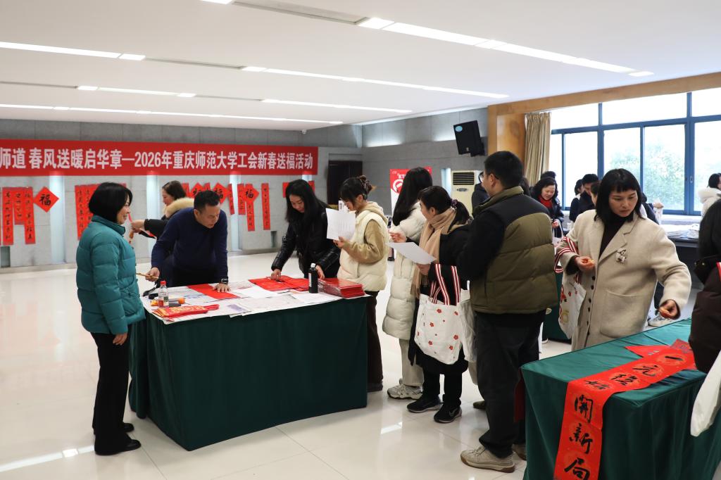 作为学校工会传统文化惠民系列活动的重要组成部分,本次新春送福活动将中华优秀传统文化传承与师范特色有机融合,既丰富了教职工的精神文化生活,为他们营造了浓厚的节日氛围,搭建了交流互动的温馨平台,又深化了师道传承的文化内涵,将学校的关心关爱转化为凝聚人心、鼓舞士气的强大动力。大家纷纷表示,将以此次活动为契机,带着学校的祝福与期许,在新的一年里坚守教育初心、勇担育人使命,为学校高质量发展贡献更多力量。