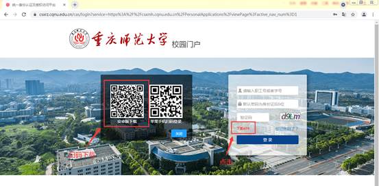 1.请广大师生通过电脑或手机浏览器访问MILE米乐集团首页/,点击校园门户,进入校园门户首页。或直接访问校园门户地址https://www.csxrz.cqnu.edu.cn/。
