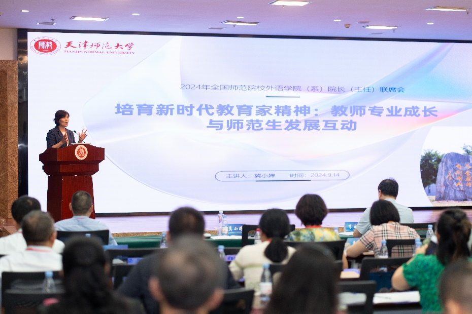 天津师范大学外国语学院院长冀小婷教授以“培育新时代教育家精神:教师专业成长与师范生发展互动”为主题,探讨如何通过教师和师范生的互动促进教育质量提升。她强调,要将教育家精神融入教师培养全过程,构建支持教师发展的生态系统。教师通过日常教学和实践引领师范生成长,同时自身也在教学互动中不断提升,形成了良性循环,助推教师专业成长和教育事业的进步。
