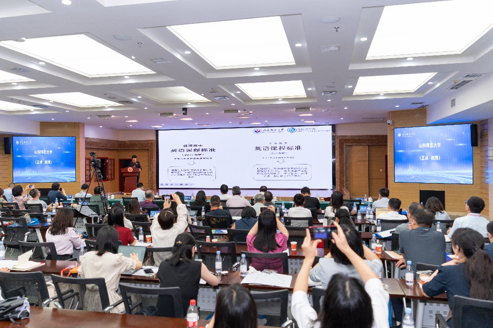 山东师范大学外国语学院院长王卓教授作报告。学校供图 华龙网发