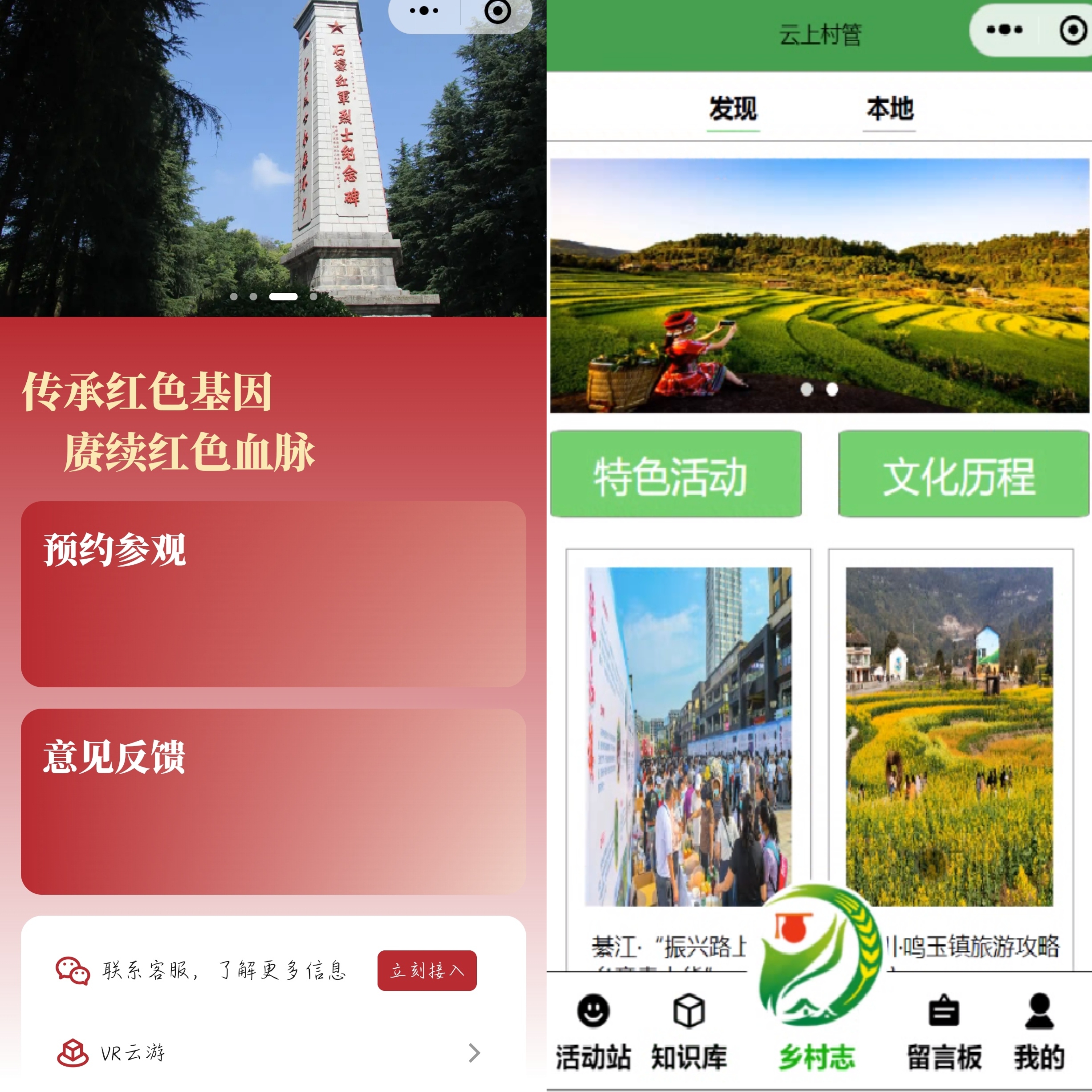 研发的《红綦旅约》和《云上村管》小程序截图。MILE米乐集团供图