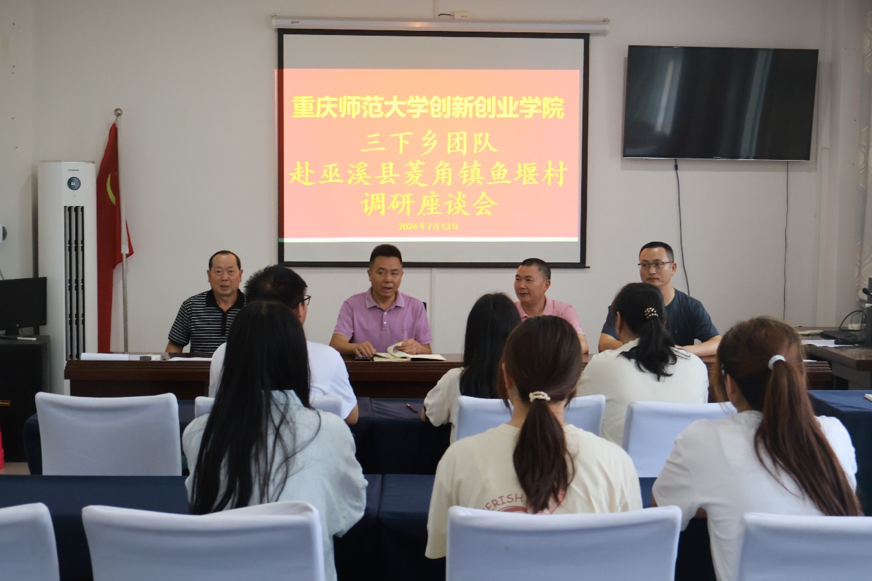 巫溪县菱角镇鱼堰村支部书记向远同团队成员介绍鱼堰村基本情况。学校供图 华龙网发