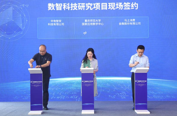 此外,为推动更多科研成果由“智”变“金”,重庆国家应用数学中心、中电智安科技有限公司、马上消费金融股份有限公司签订了科研成果转化协议,推动产学研三方的深度交融。