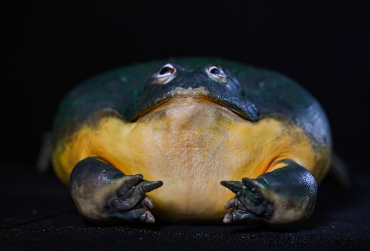 ▲动物标本——非洲牛箱头蛙。首席记者 龙帆 摄