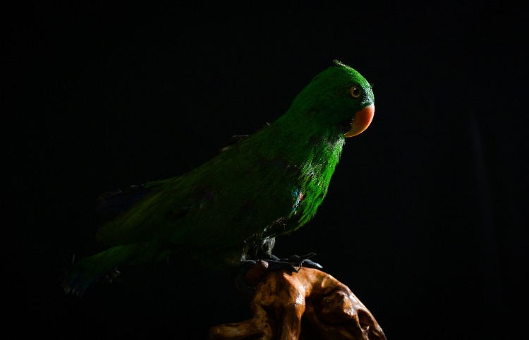 ▲动物标本——折衷鹦鹉。首席记者 龙帆 摄