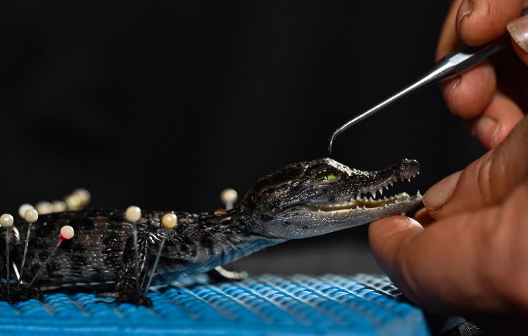 ▲动物标本——暹罗鳄。首席记者 龙帆 摄