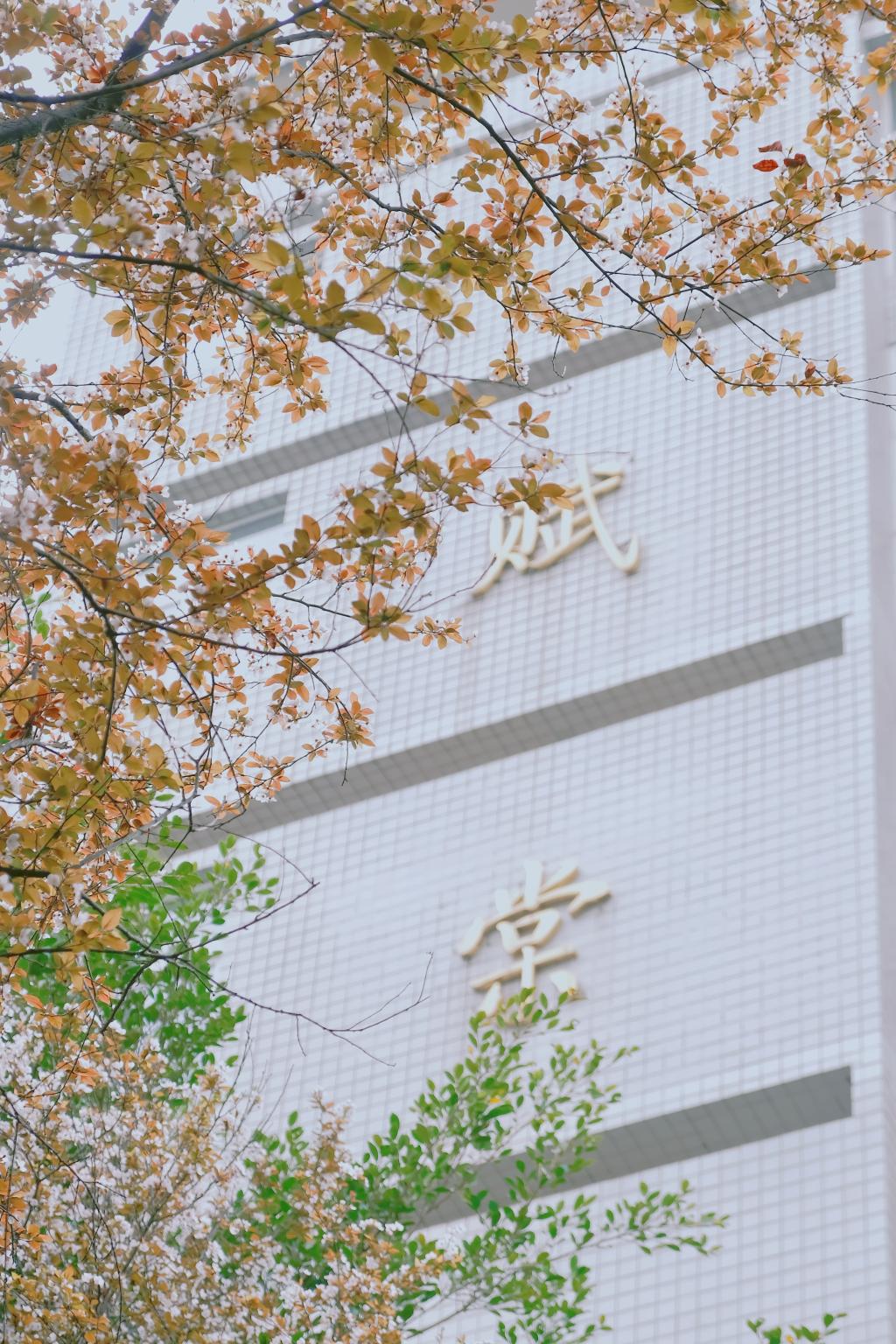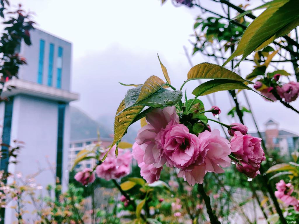 碧桃绕观春风静,柔栌摇汀夕照微。一瞥便定格季节的色彩,为师生簪上一份限定美丽。