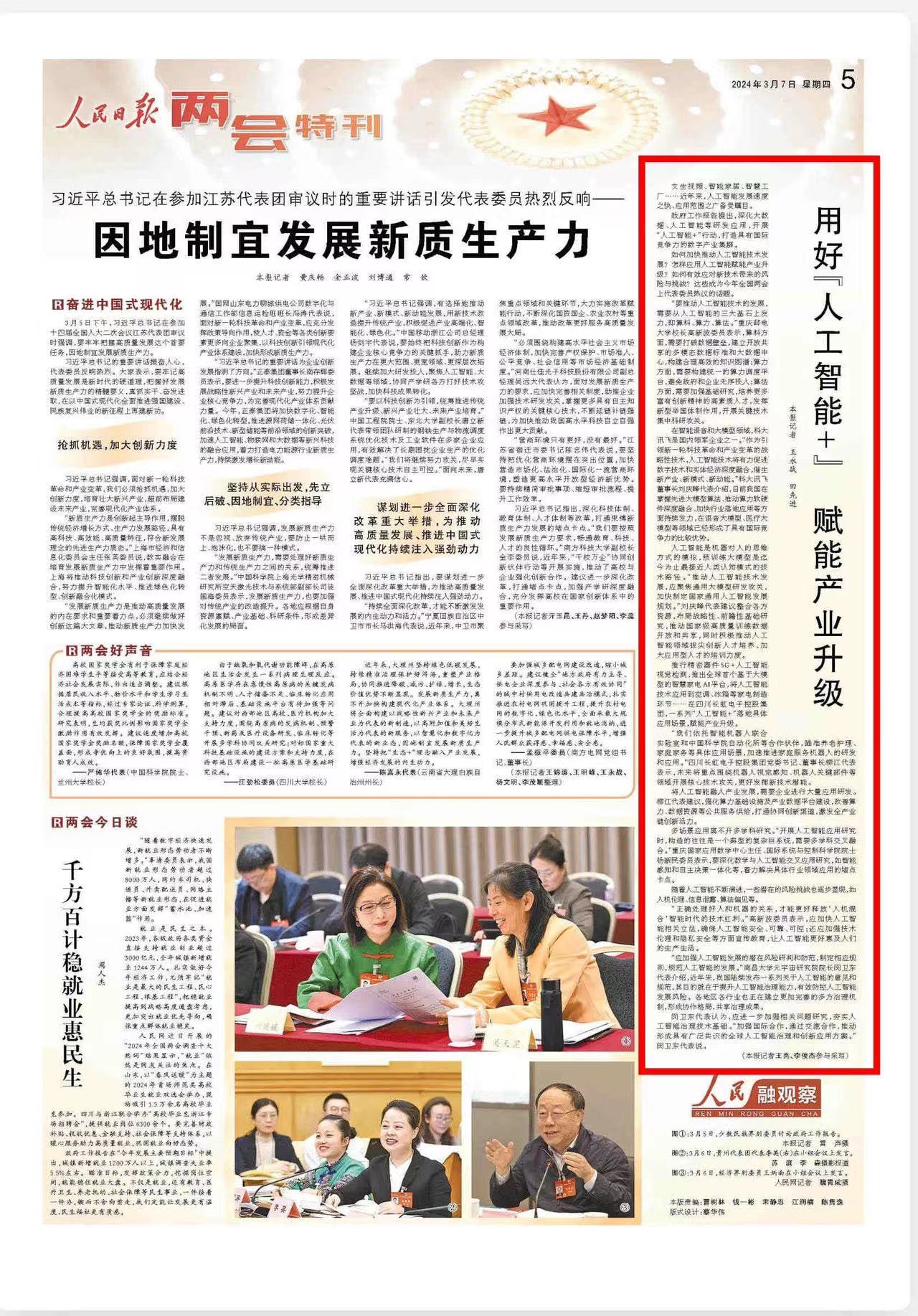 【媒体重师】人民日报:全国政协委员高新波、杨新民:用好“人工智能+” 赋能产业升级