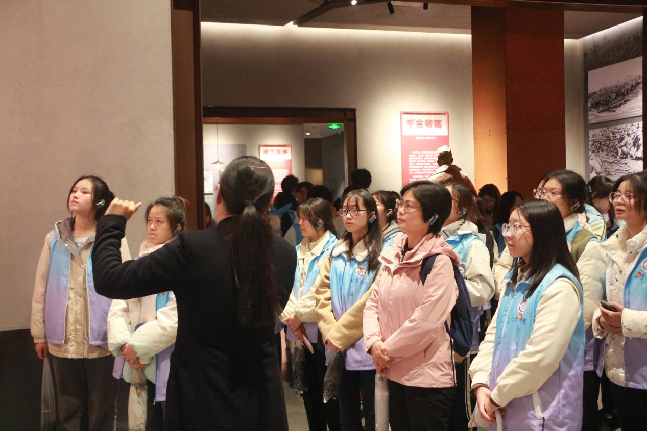 沿着壮志路和凌云路,同学们在讲解员的带领下进入歌乐山革命纪念馆,重温革命先烈们的英勇事迹,走近党的光辉历史,切实感受红岩精神。受尽酷刑仍顽强不屈的巾帼英雄江竹筠、中国年龄最小的革命烈士“小萝卜头”宋振中、“在烈火和热血中得到永生”的叶挺将军和崇尚科学捍卫民主的数理学家周均时先生……馆内的一幅幅史图生动讲述着白公馆、渣滓洞革命先烈的斗争事迹,每一件展陈的物件都引人久久驻足,心生震撼。