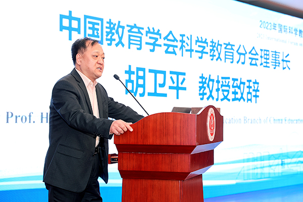 中国教育学会科学教育分会理事长、陕西师范大学教授胡卫平致辞。