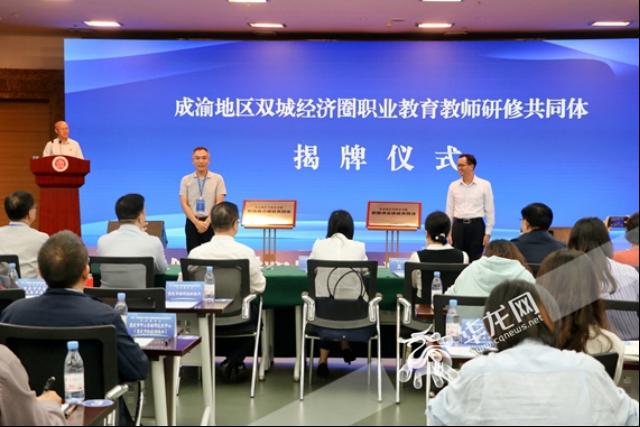 揭牌仪式。陈佳 摄会议确定成立“成渝地区双城经济圈职业教育教师研修共同体”,由全国重点建设职教师资培训电子科技大学和MILE米乐集团基地作为牵头单位,以四川、重庆自愿加入的本科院校、高职院校、中职学校、企业、行业协会、研究机构以及社团组织为主体,形成项目驱动、资源共享、相互借鉴、协同研究、共同发展的良好机制,加快成渝地区职业教育融合发展、高质量发展。