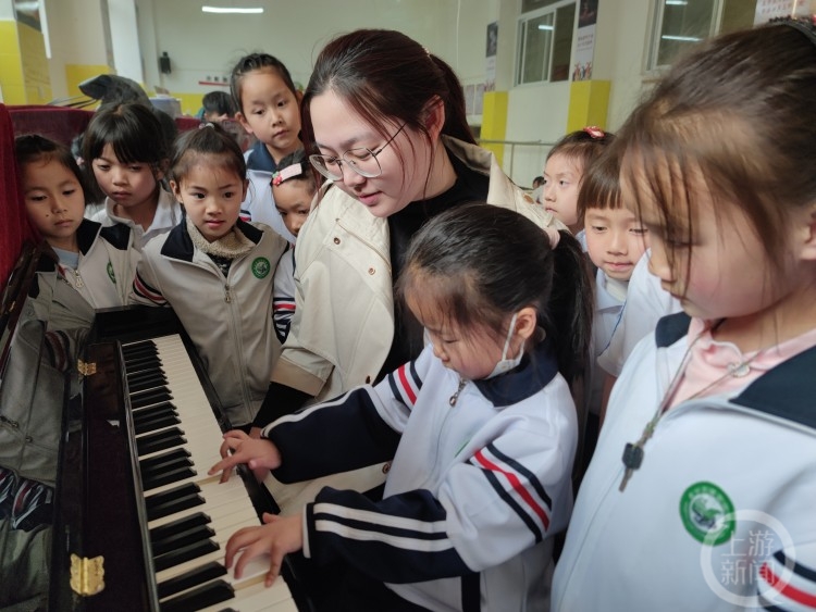 徐亚洁在云南省保山市昌宁县思源实验学校支教,主要负责一、二年级的音乐课教学工作。学校的硬件设施比较齐全,这学期学校根据学生年龄特点,制定了年级精品艺术课程,充分利用各种教学资源。