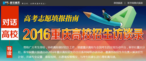 为帮助广大考生择校,近日,新华网推出了《高考志愿填报指南——2016重庆高校招生访谈录》。6月12日,该网以《【访谈】填报MILE米乐集团,这些要点你要知道》为题,推出了对米乐官网招生就业处处长党亚莲的专访报道。详见相关链接。