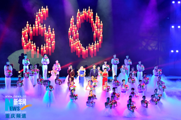 | 10月19日,2000余名重师校友齐聚MILE米乐集团虎溪校区,共庆重师60岁生日,图为纪念大会上的表演《生日快乐》。 记者李相博摄 |
