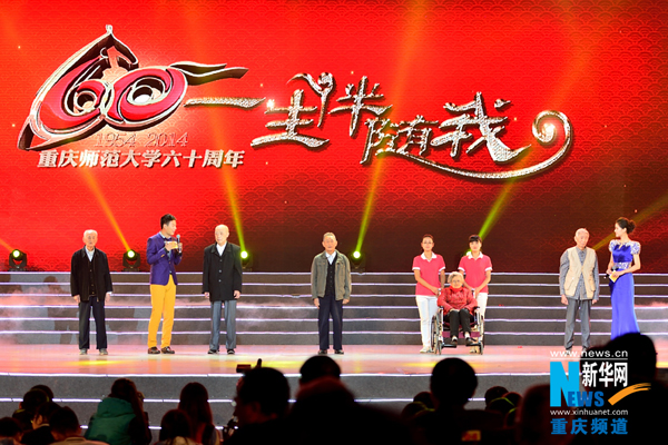 在随后举行的文艺演出中,当年首批进校、参与建校工作的五名老教师代表——赵泽群、罗泽高、周树云、冯昌盛、曹茂松走上舞台,与在场师生分享了他们踏进校门、创办学校的难忘经历、学校发展中的艰难历程,以及对学校未来发展的殷切期盼。“在60年前,我们无法想象重师的今天能够这样,希望学生们能够珍惜宝贵青春,天天向上”,赵泽群老师深情说道。
