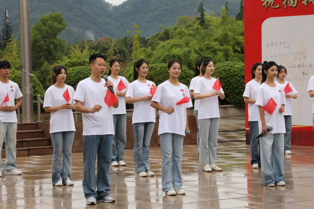 伴随着雄壮的国歌声,鲜艳的五星红旗缓缓升起,师生们肃立注目,表达着对祖国的无限热爱和崇高敬意。在这庄严的时刻,91位与新中国同生日的同学更是心潮澎湃。
