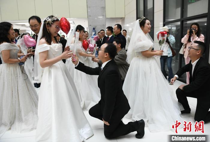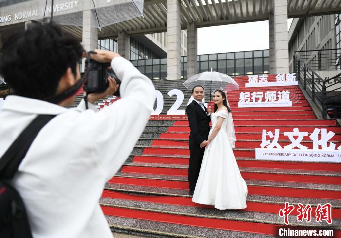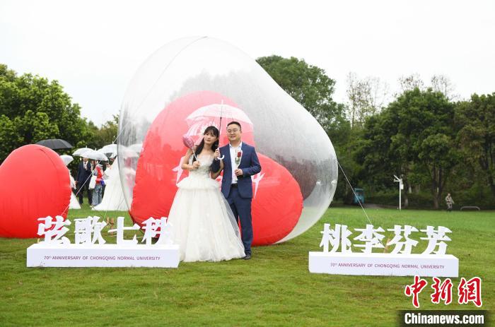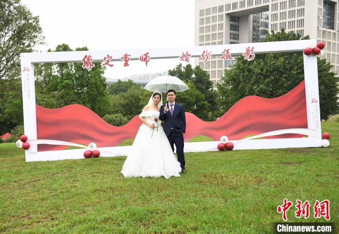 图为校友伉俪回到母校拍摄婚纱照。中新社记者 周毅 摄