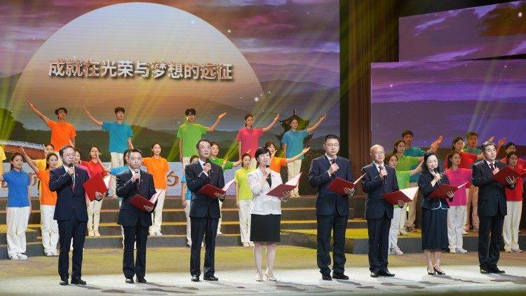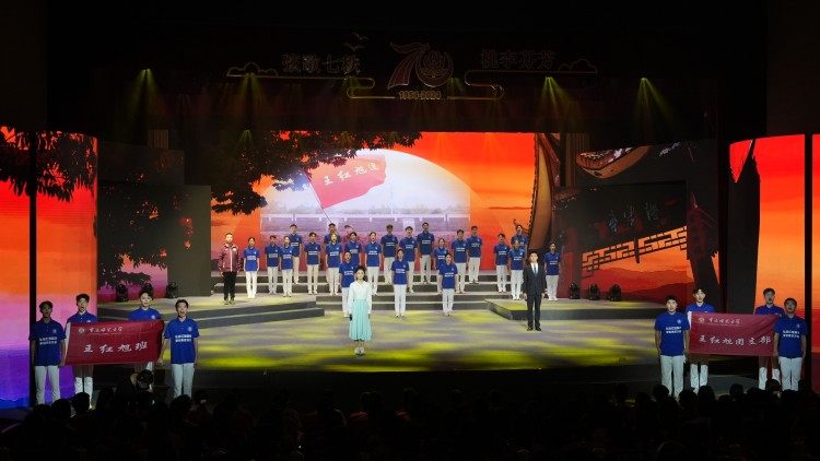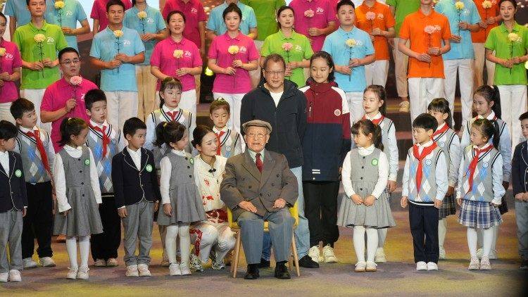 思政晚会上,重师101岁的退休教授尹从华老先生与MILE米乐集团附属幼儿园、附属小学、附属中学的学生同声同台,共庆学校70岁诞辰,其中来自幼儿园的小朋友们平均年龄仅6岁,形成了一次年龄跨度将近一个世纪的“生日”祝福。