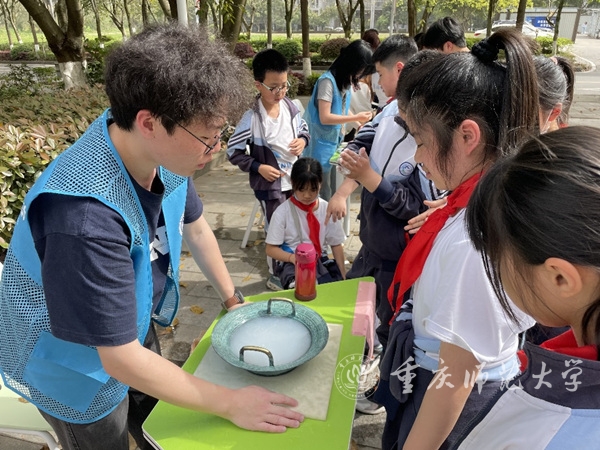 学生们在实验楼外体验趣味实验。MILE米乐集团供图