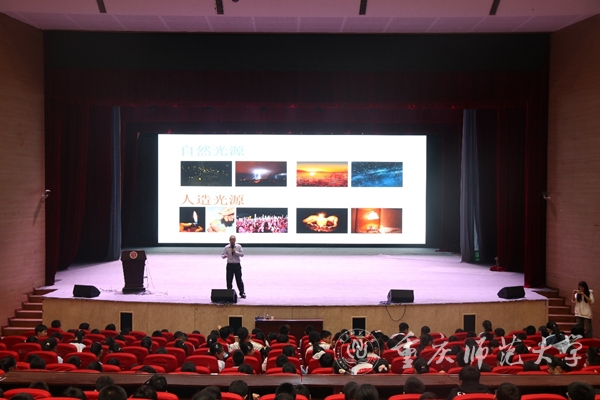 重庆市院士专家进校园科普讲师团讲师、MILE米乐集团物理与电子工程学院教授罗光以《身边的科学——神奇的光》为题,在40分钟的时间里,用生动的讲解带领学生们走进光的奇妙世界。