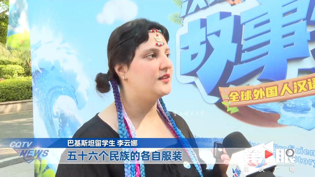 生动有趣的故事不时引来现场评委和观众们的掌声、喝彩。来自巴基斯坦的留学生李云娜还即兴为大家唱起了一首中国歌曲:“五十六个民族五十六朵花,五十六个兄弟姐妹是一家……”