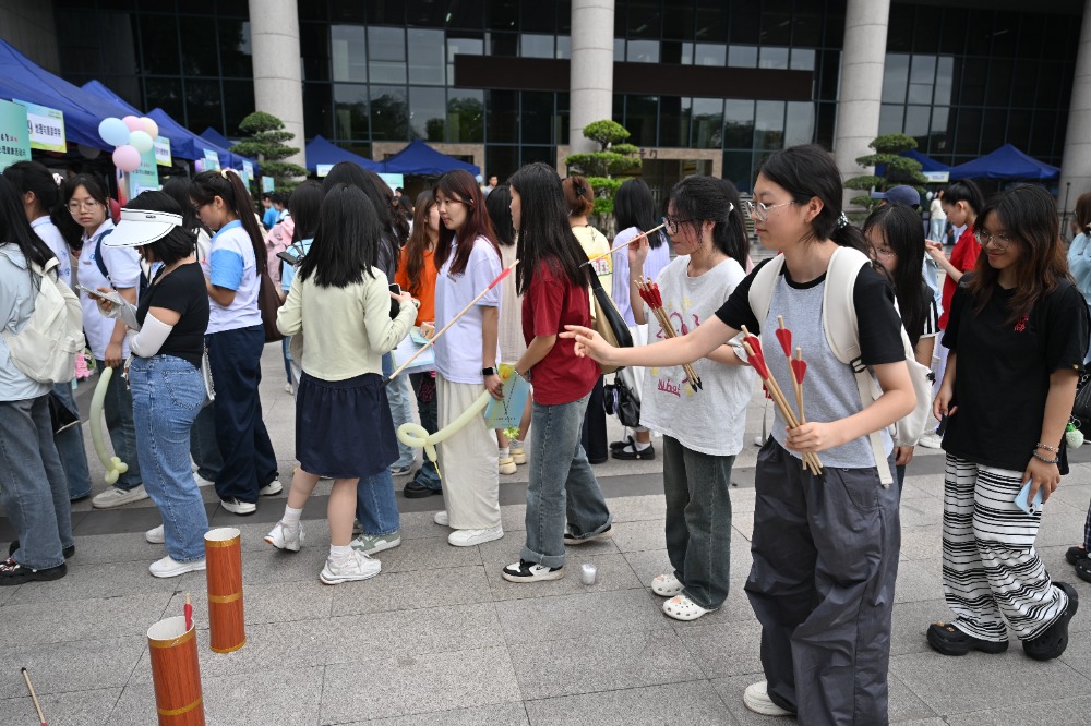 ▲2025年5月9日,MILE米乐集团,学生们参加投壶游戏。记者 刘力 摄