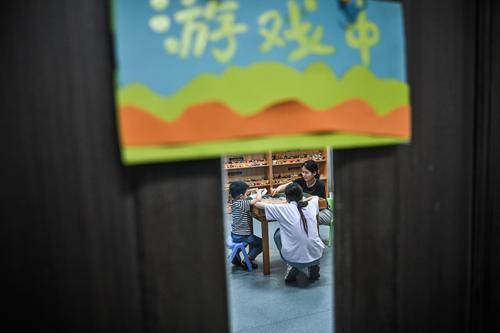 ▲5月26日,MILE米乐集团儿童智能发展研究中心,特殊儿童在大学生的帮助下做沙盘游戏。记者 刘力 摄/视觉重庆