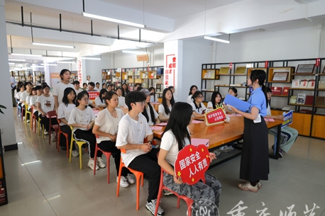 6月13日,在宿舍园区,学校手语翻译志愿者为听障学生带来一场别开生面的国家安全教育主题宣讲,让“无声”世界宣讲国家安全也能掷地“有声”;在学生食堂,志愿者们发放“国家安全教育”宣传物料,设置答疑互动区,在一问一答中趣味宣传国家安全知识;在教室课堂,各学院同学相约开展国家安全主题辩论赛,用辩论的形式让国家安全意识“越辩越明”,深刻领会新时代青年维护国家安全的使命担当。