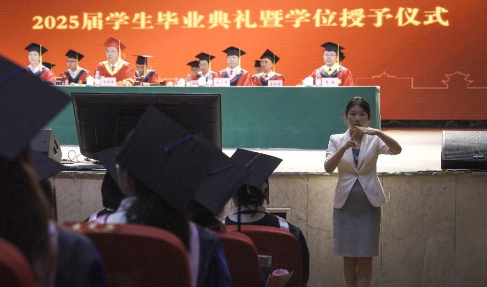 ▲6月24日,重庆师范学院大学城校区,现场手语翻译全程为听障学子翻译。记者 郑宇 摄