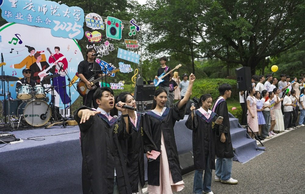▲6月24日,重庆师范学院大学城校区,毕业生们现场高歌,为同窗送行。记者 郑宇 摄