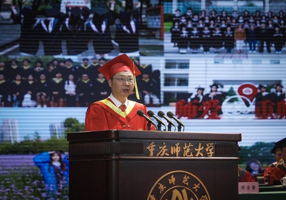 ▲6月24日,重庆师范学院大学城校区,校长王国胤寄语毕业生们。记者 郑宇 摄
