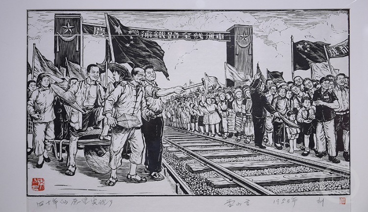 李少言创作的《四十年了,愿望终于实现了》,反映了成渝铁路开通的场面。