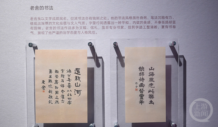 老舍的书法作品展示。