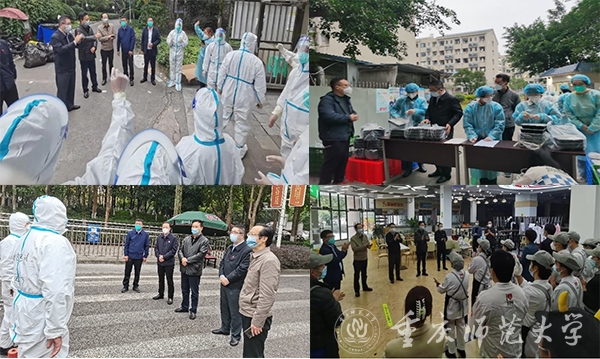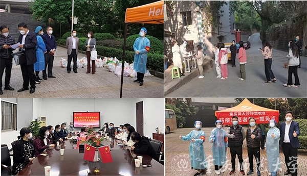 近日,全校各级党组织、全体党员干部、广大师生在学校党委的坚强领导下,坚守岗位、模范履职,用积极的行动缝织起疫情防控的密网,用忙碌的身影书写着重师人的抗疫担当。他们有的驻守校园,不怕苦累、通宵达旦,全力守护校园和学生的安康;他们有的响应号召,深明大义、顾全大局,逆行返校防控“疫线”勇担当;他们有的下沉社区,把疫情防控网络布置到一线、落实在基层,让党旗时刻高高飘扬在抗疫一线。