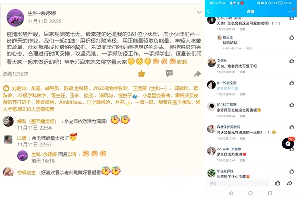 “疫情形势严峻,居家健康监测第五天,最牵挂的还是我的361位小伙伴们。每天的网格化报寝、排查、填表、统计、零报告,特殊时期,你的一句‘正常’能让我安心,我的一句‘全年级正常’能让学院安心,学院的一句‘全院正常’能让学校放心……无数个‘正常’才能把大家的生活拉回正轨。”这是生命科学学院2022级辅导员余婷婷老师,在自己的QQ空间中写的一段话。