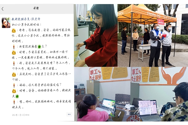 疫情无情人有情,心手相牵共克时艰。面对严峻的疫情形势,招生就业处就业指导中心主任王睿同志主动请缨返回学校带领就业服务团全体成员积极开展工作,收集信息、挖掘信息、整理信息、投送信息…为毕业生撑起求职就业的一片蓝天。新闻与传媒学院教职工党员郑志坚在带班辅导员临产无法进校工作的情况下,毫不犹豫接下了105个2022级新生的思想政治工作。作为全校资历“最年轻”的辅导员,核酸检测带队核查,统筹线上教学、学生活动、晚上查寝...处处都有他的身影。虽然目前住在学校与家人三地分居,但他乐观地说:“这给了我更多时间与学生交流”。