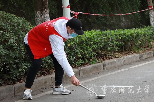 从博雅楼到三食堂,从体育馆到图书馆,在这不长不短几百米的马路上,他每天都要将这套动作重复成百上千次,画线长度超过两公里。疫情期间,“一米线”是文明线更是安全线、健康线,因此负责画线工作的李佳南总会比其他志愿者和医护人员提前两个小时到达核酸检测现场画好“一米线”,保障同学们的安全。