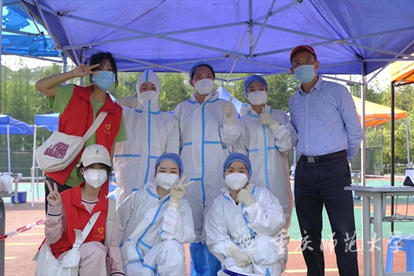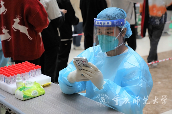 他积极、耐心的协助医护人员进行核酸检测工作,维持离场秩序,每次都要等全部受检同学离场之后,他才结束一天的工作,用自己的行动诠释着“初心常在,不负韶华,疫情当前,责无旁贷”的精神。