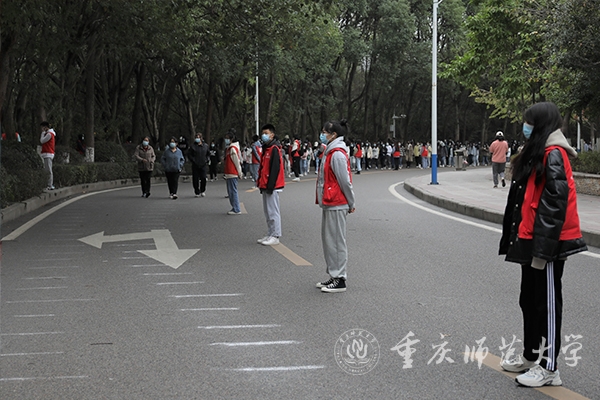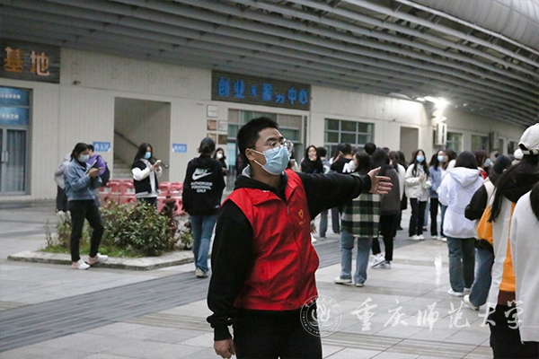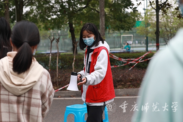 “请大家迅速扫码离开,不要聚集!”不断地用声音来引导同学们有序离开检测点,这就是董小莹在志愿活动期间主要的工作。作为音乐学院的一名研究生,一名入党积极分子,他在看到志愿者招募的时候第一时间就进行了报名,并迅速投入到了志愿工作中。“我认为这是我在大学这个阶段应该去做的。”
