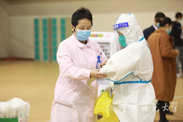 卫永琪医生不能参与一线核酸检测工作,但她依旧心系校园,听说此次疫情形势严峻,学校亟需人手,她主动表示:“虽然上不了一线,那我就保好后方!”
