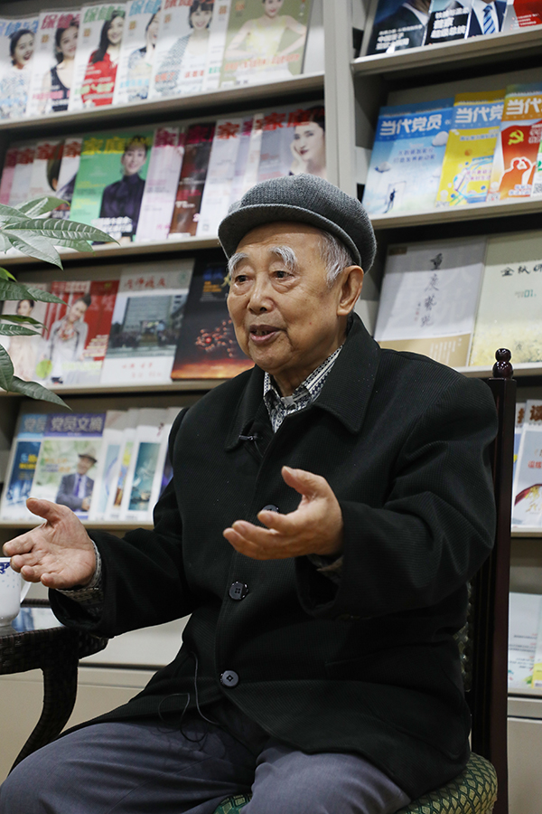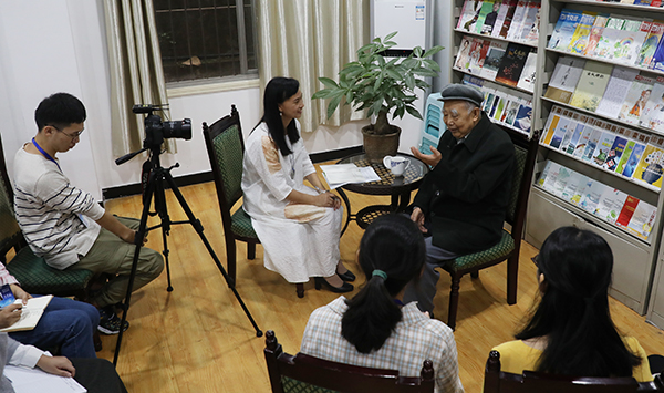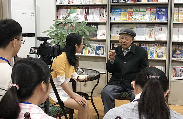 理科思维中的常用方法——点、线、面、体法被董教授搬进了文学教学中。“吃透每篇文章的重难点,沿着这些点深入下去,牵出一条线,线梳理清楚就能形成面,面随之构成体,这样深入分析每一篇后就会有很大收获”。几十年前,董教授初到重师任教,担任他从未接触过的白话文教学工作,他花费三年功夫,吃透了白话文的所有内容。“从点到线,由线到面,由面到体,这是我自己的经验和体会,也是在文学方面提升和进修的方法。文学阅读讲究‘懂透化’,弄懂了才能转化到自己身上”。董教授谈到自己自学白话文的经历时,我似乎可以看到微弱灯光下一个苦心钻研的年轻小伙,只是沧桑巨变,他已然成为九旬老叟,心中不变的依然是那份执着。