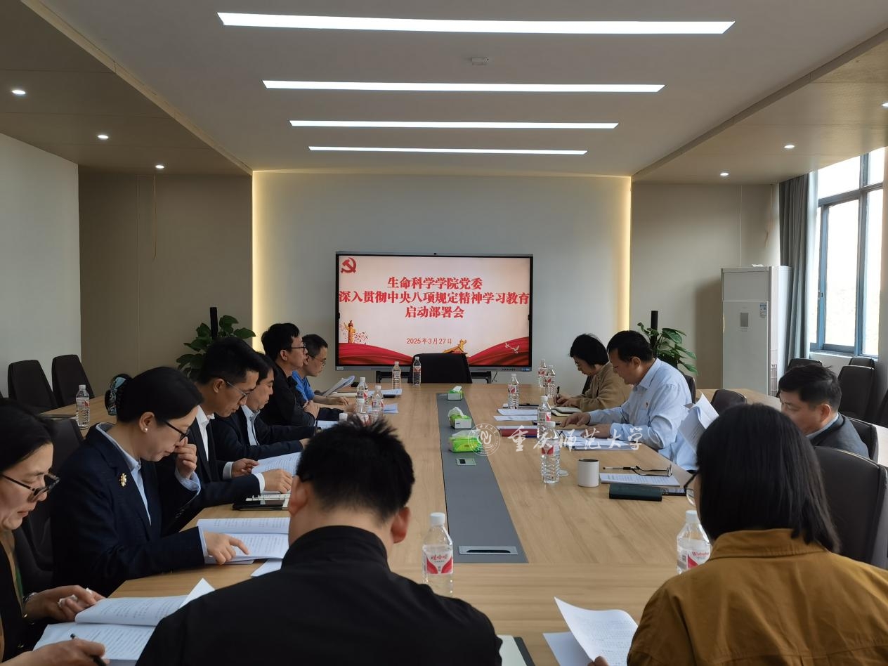 根据工作安排,中央八项规定精神学习教育于2025年3月底启动至7月底结束,坚持聚焦主题、简约务实的原则,不分批次和阶段,将学习、查摆问题、整改等工作一体推进,融入日常、常抓不懈。生科院各支部于3月底前通过组织生活会等方式向全体党员进行学习教育部署动员。