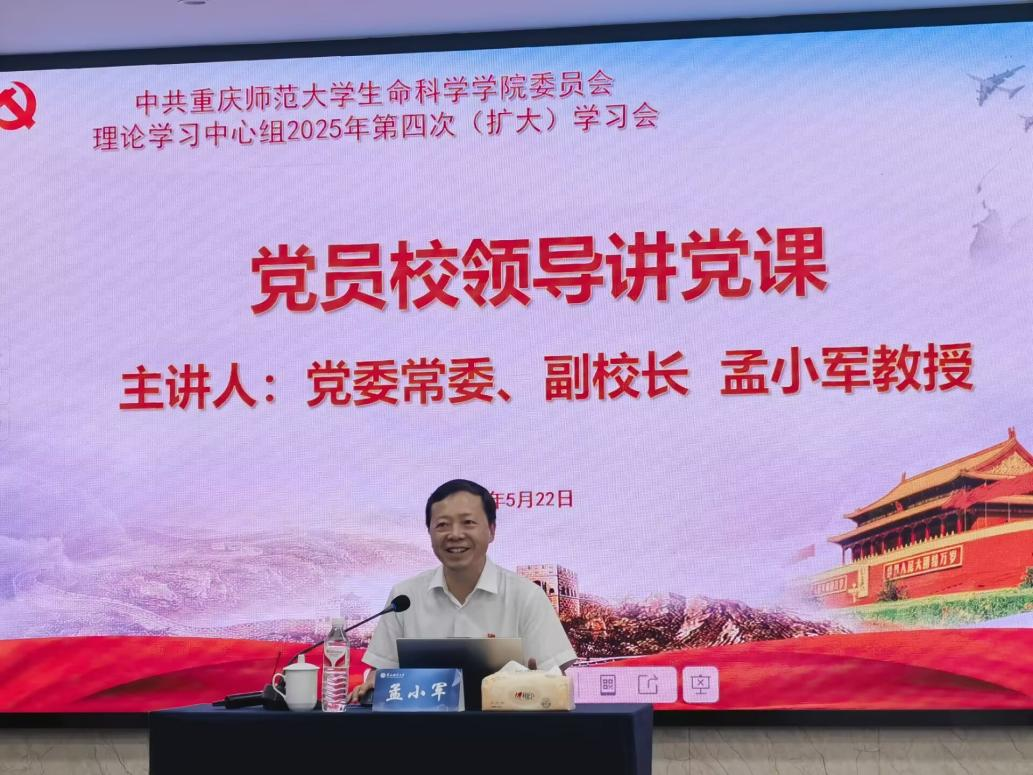 5月22日下午,生命科学学院党委在逸夫楼409会议室召开理论学习中心组2025年第四次(扩大)学习会,会上,校党委常委、副校长孟小军教授为生命科学学院全体教职工党员讲授作风建设专题党课。本次党课聚焦中央八项规定及其实施细则精神,深入剖析党的作风建设历史脉络,并对学院党政班子和教职工党员提出明确要求,进一步强化了学院全体党员的纪律意识和责任担当,为学院事业发展提供坚强保障。会议由生命科学学院党委书记付长波主持。
